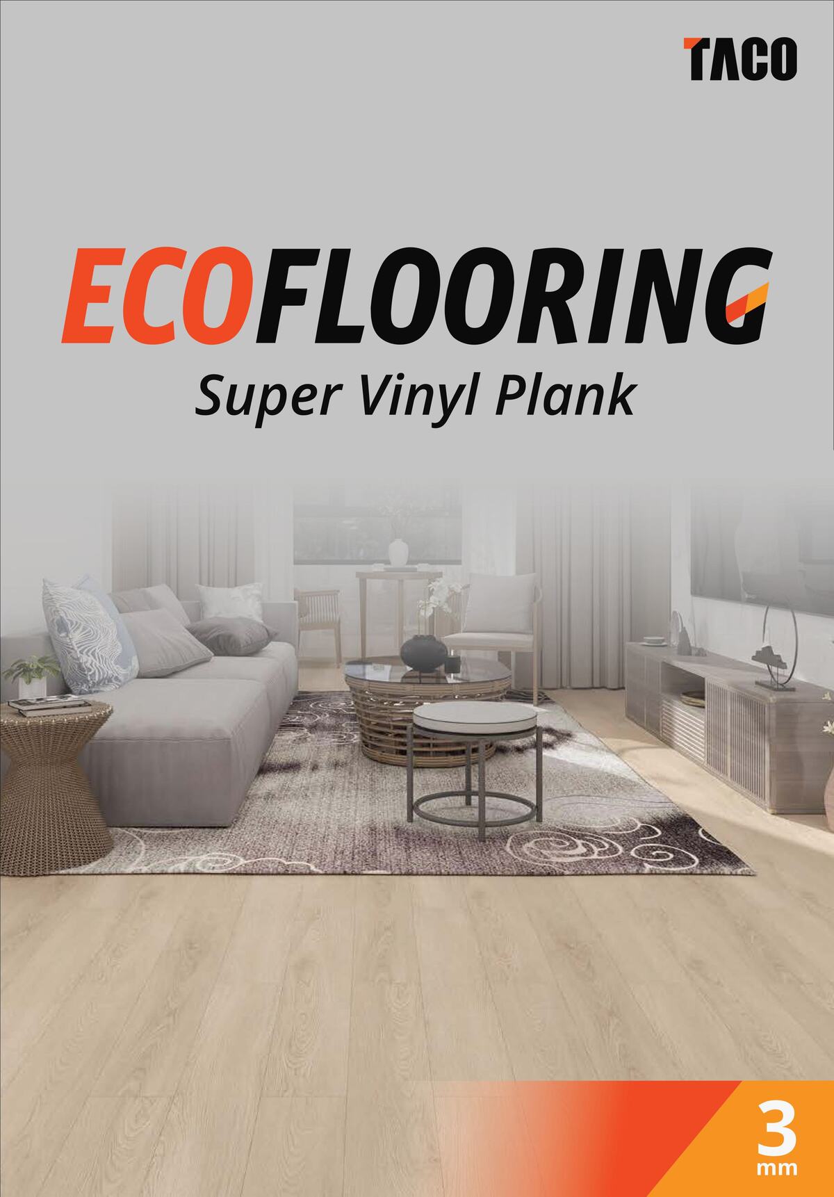 ECO Flooring Super Vinyl Plank 3mm adalah lantai vinyl 3mm dari TACO yang dirancang untuk hunian dan area semi-komersial dengan anggaran efisien. Dengan wear layer 0.2 mm dan tiga pilihan seri motif — Wood, Fabric, dan Stone — produk ini menghadirkan tampilan natural yang estetis dengan harga yang lebih terjangkau dibanding seri vinyl premium TACO.