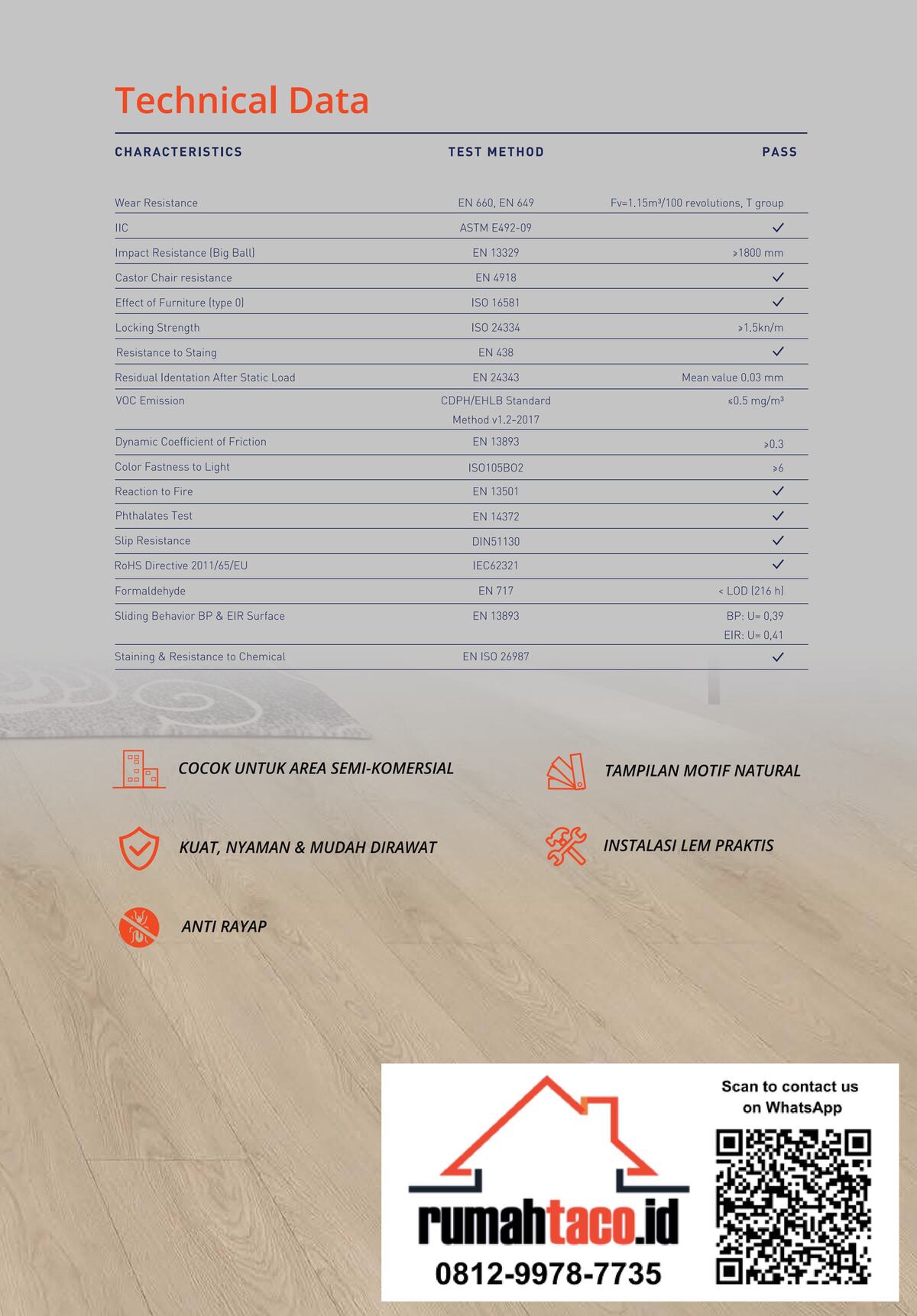 | Lapisan Pelindung (Wear Layer) | 0.2 mm | ||
