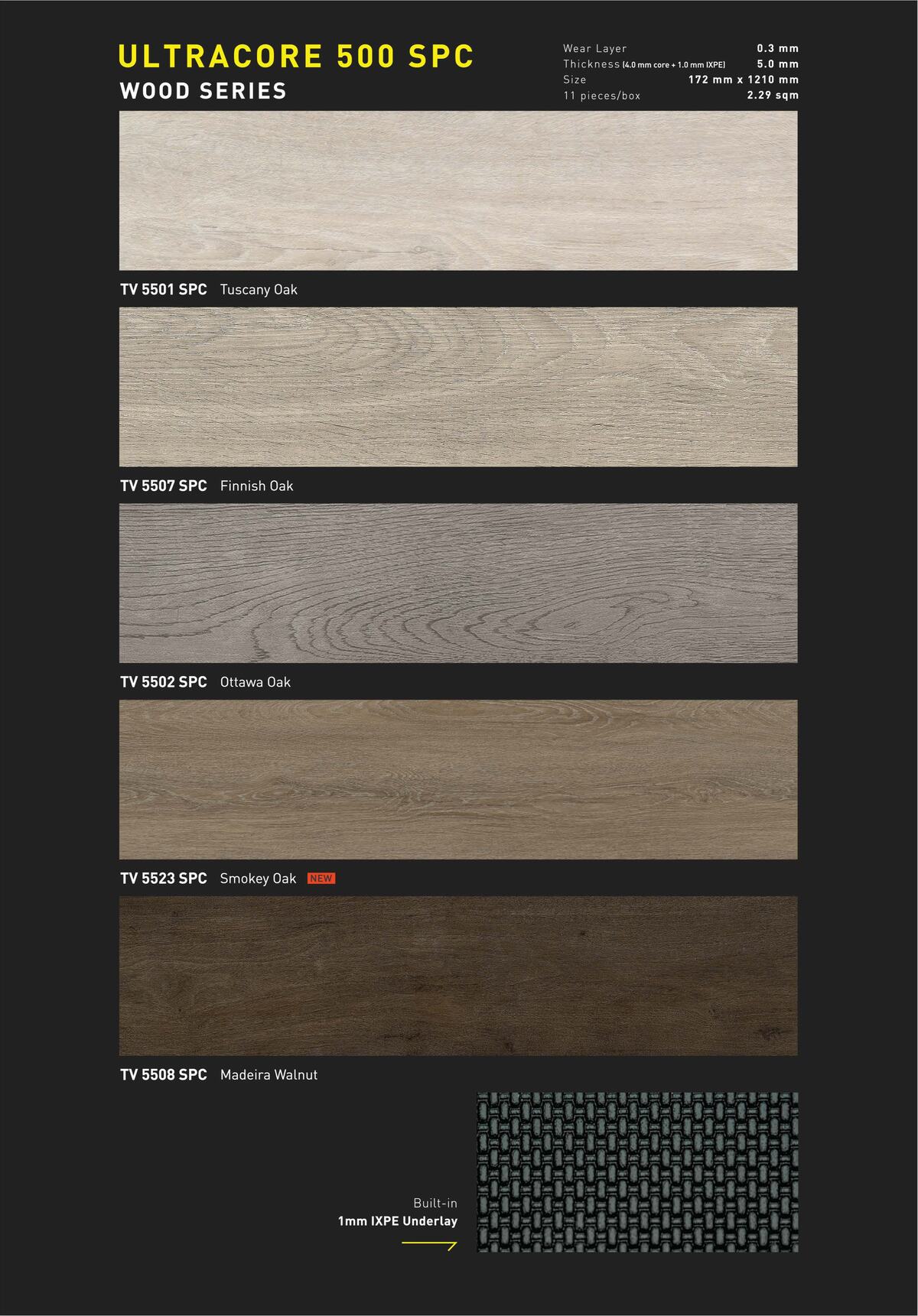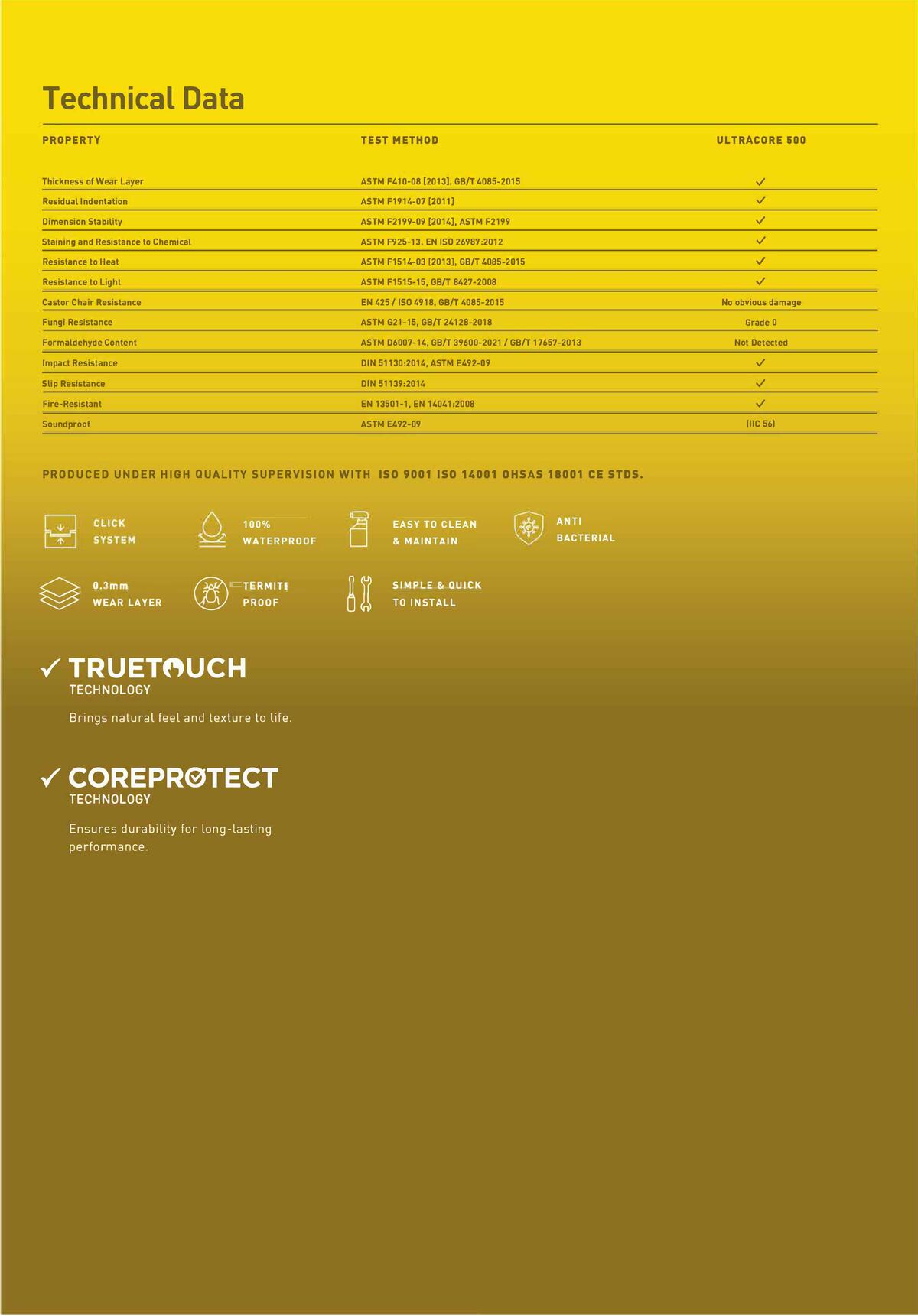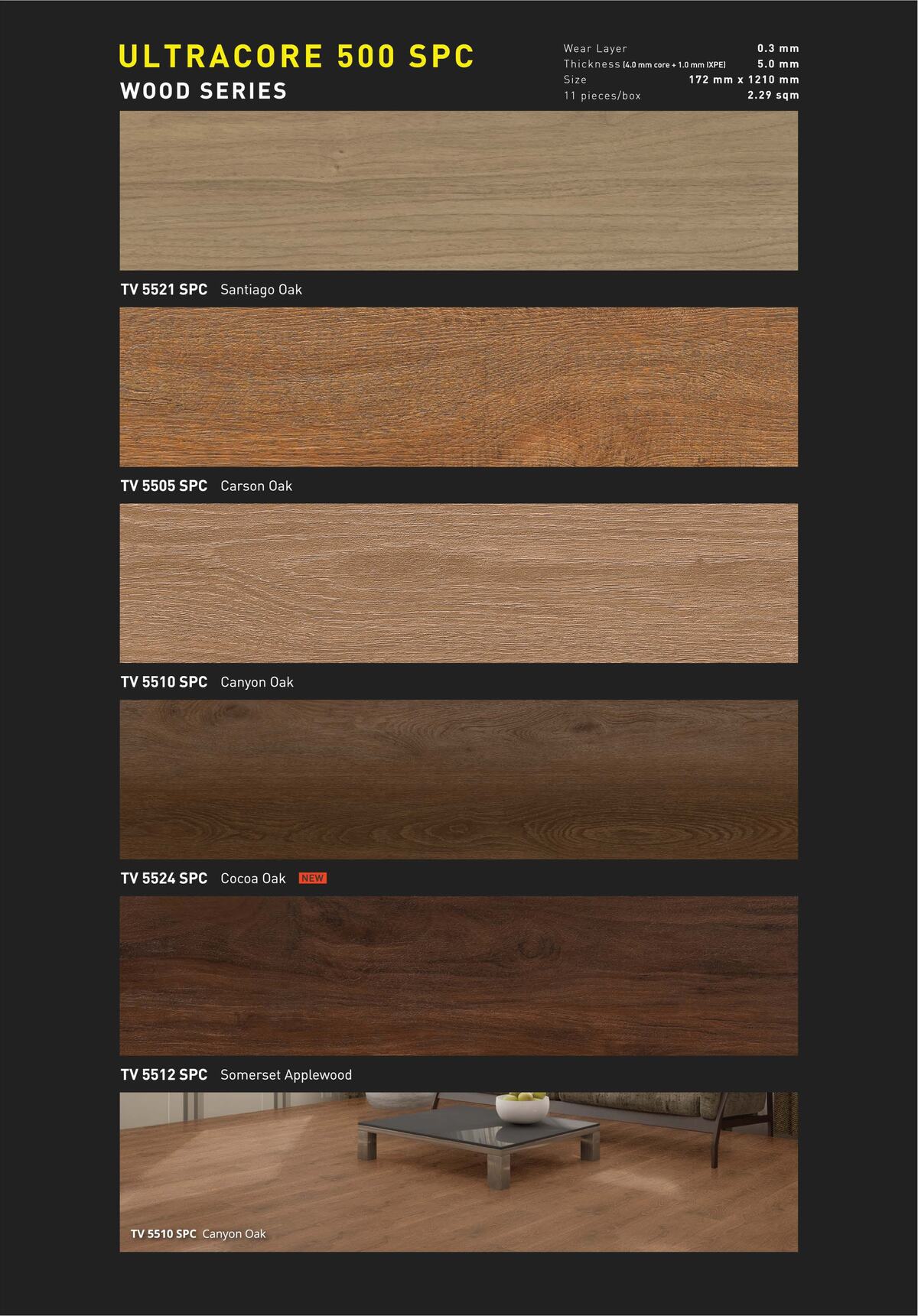 Dengan ketebalan 5.0 mm dan wear layer 0.3 mm, SPC TACO lebih tahan gores, tidak mudah melengkung, dan memiliki daya tahan tinggi terhadap air serta tekanan.